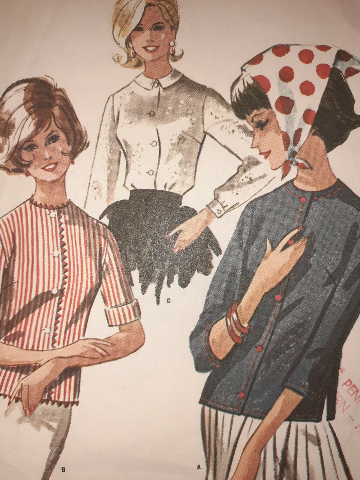 Blouse Overblouse Shirt Mccalls Sewing Pattern 6583 Size 14 Vtg 60 S Cut Button Ebay